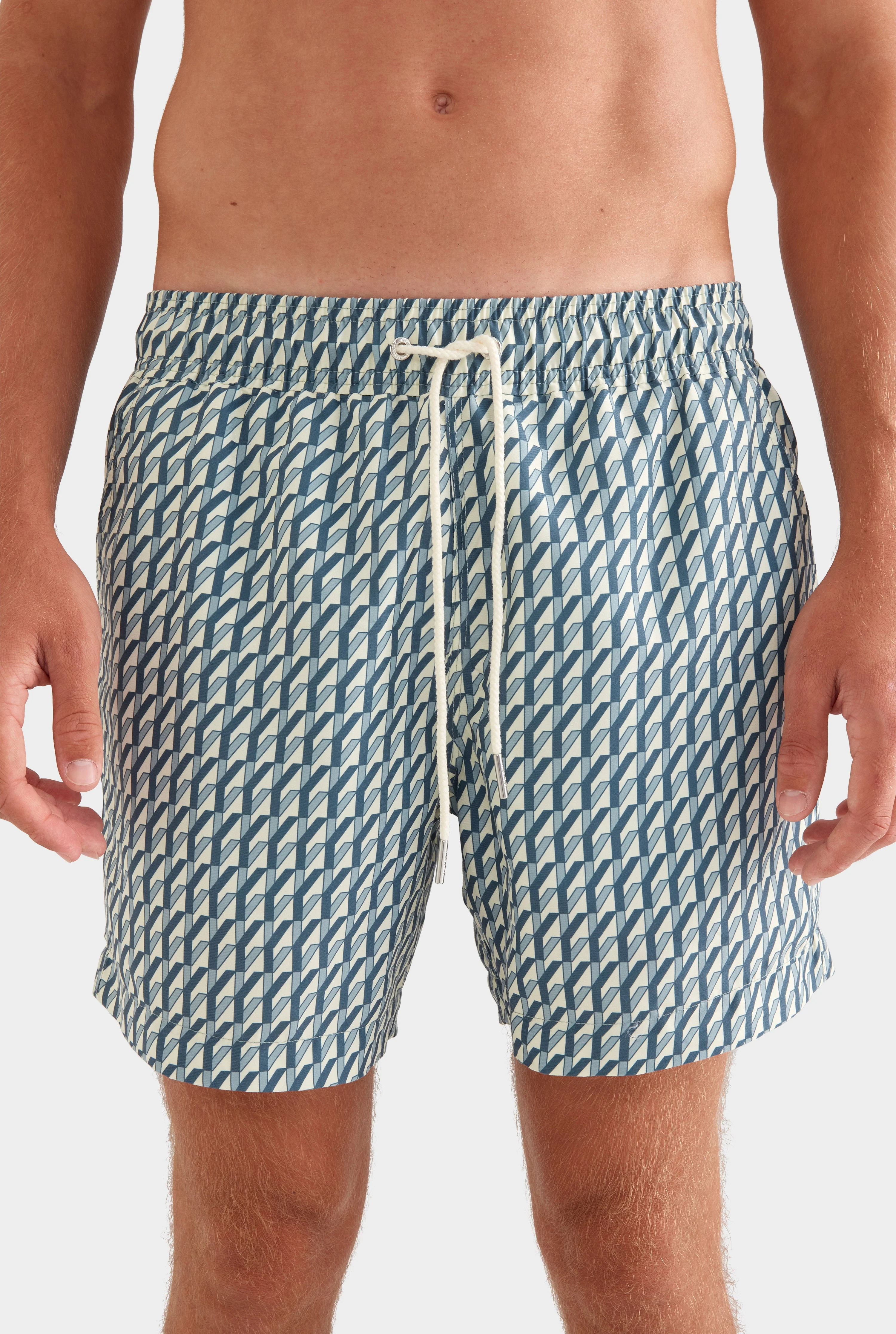 Printed Swim Short - Dark Slate/Antique White V Monogram