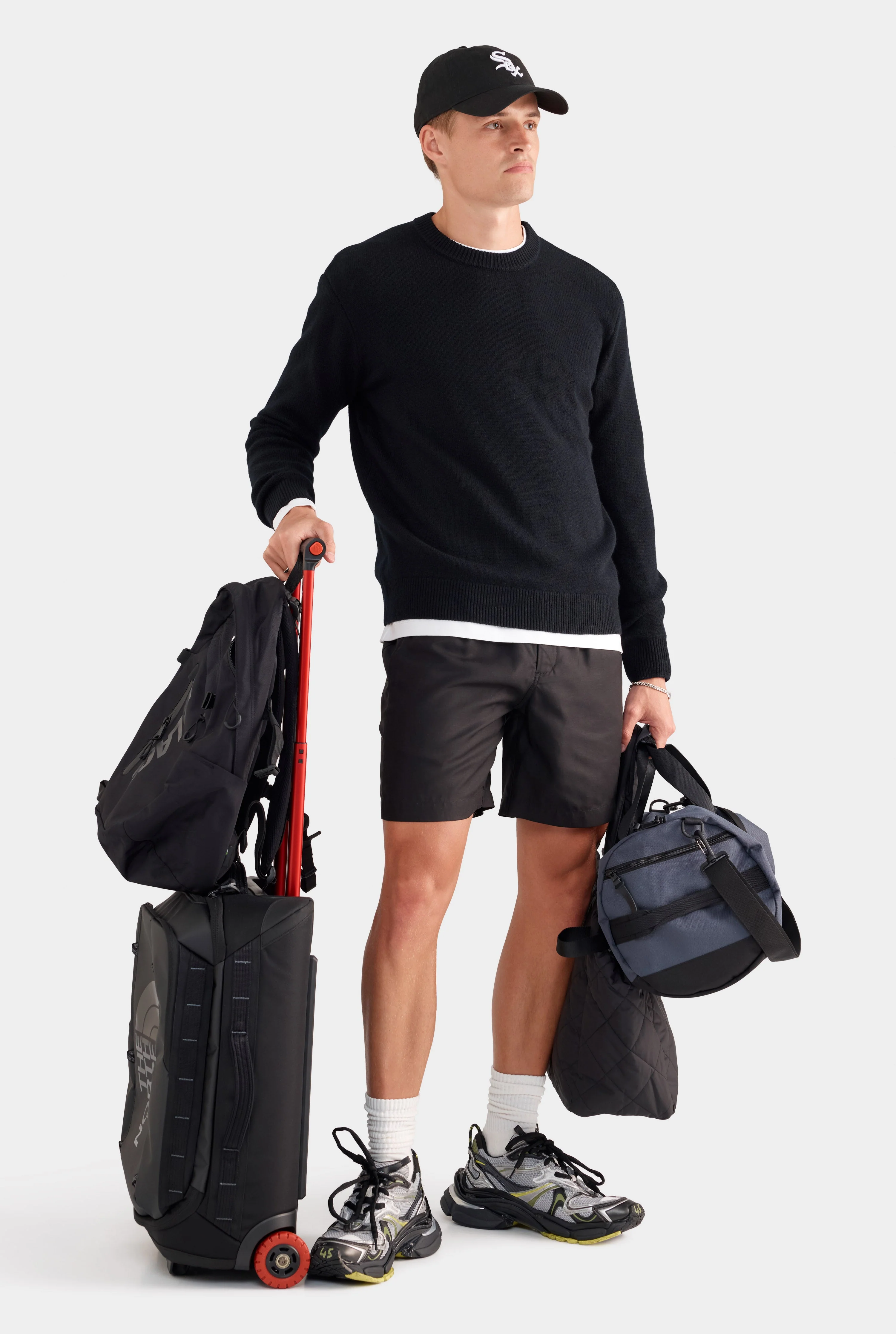 The Wool Cashmere Sweater in Black offers the perfect balance of luxury and comfort. Made from two wardrobe trigger words - wool and cashmere, this relaxed fit sweater features a classic crew neckline and a jersey stitch for a refined finish. This soon-to-be favourite sweater works well with any travel essentials trousers.